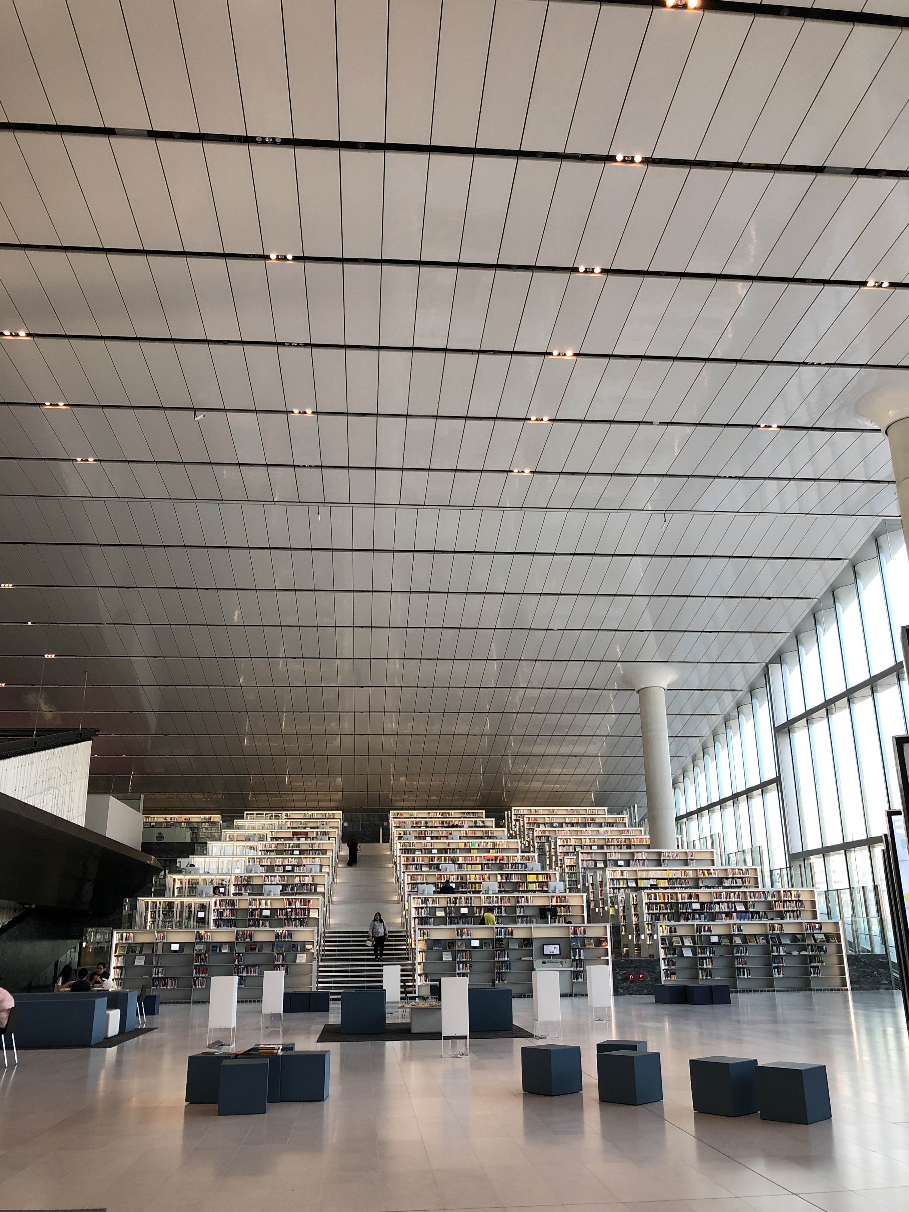 It is a library (there are over 1 million books, as well as digital media, periodicals & more) but also an exhibition space with permanent displays of Qatari heritage as well as regular exhibitions and lectures. The collection of books is impressive and covers a vast breadth of topics in English (mostly), Arabic and other languages.