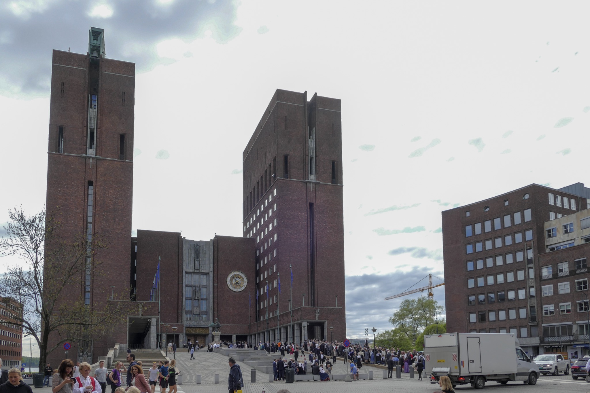 From the Opera House we walked to the City Hall (Rådhuset). Expecting a routine walk down random city streets we instead passed ancient buildings, wonderful architecture, random statues and lovely parks. Spring has definitely sprung in Oslo. The weather was perfect – warm and mostly sunny, much better than I had expected. If it stays like this I won’t complain. Sadly when we reached the Rådhuset it was closed for some important event. We didn’t find out what the event was but there were huge crowds attending, many in national costume which was wonderful to see.