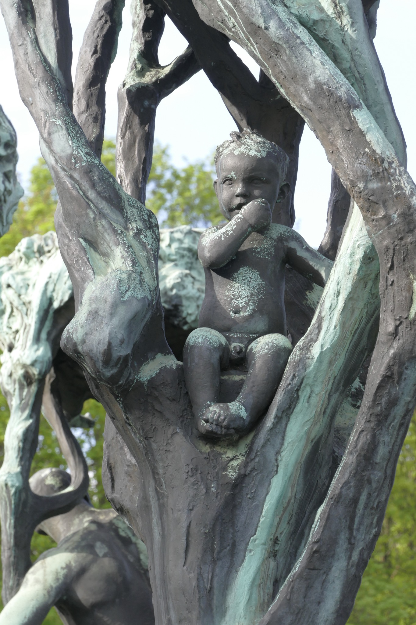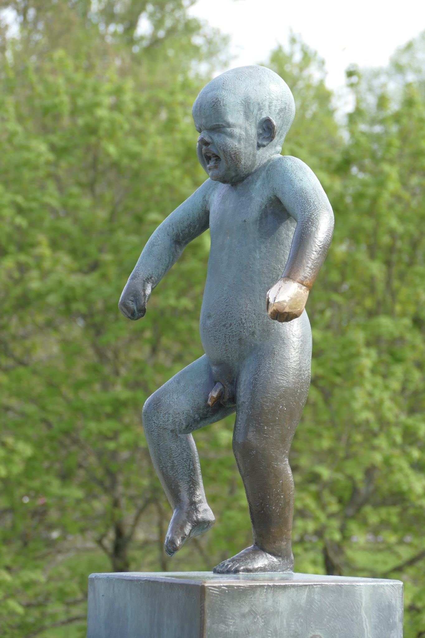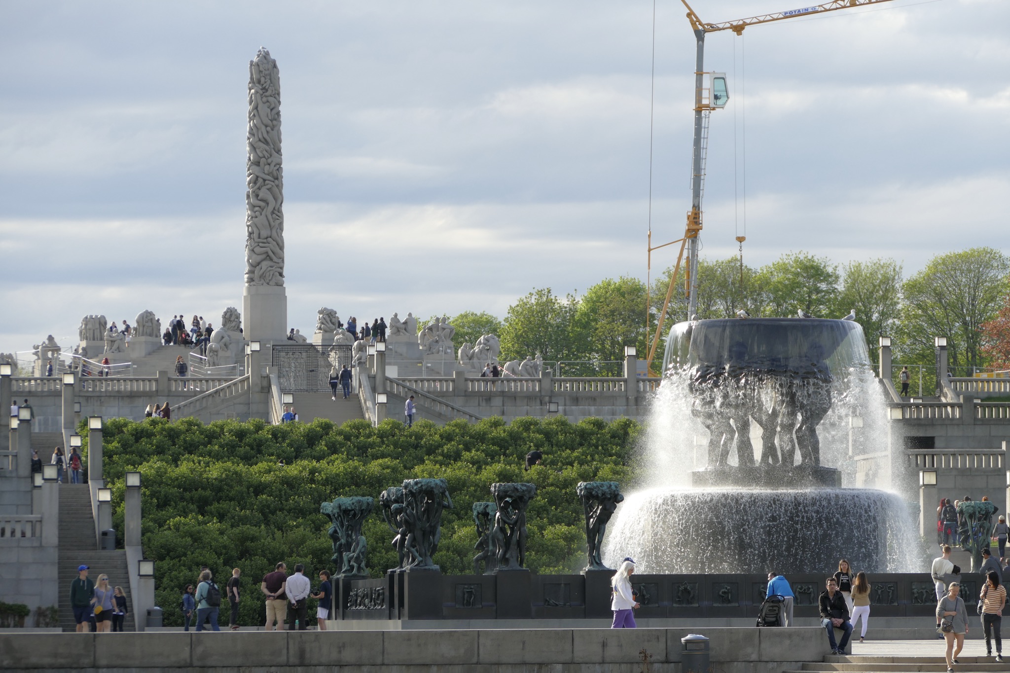 Our last stop for the day was Vigeland Park. Gustav Vigeland (1869-1943) was a Norwegian sculptor. He designed the Nobel Peace Prize medal, but he is most famous for a huge collection of massive sculptures in the park that bears his name. The Vigeland installation features 212 bronze and granite sculptures. He declined to name his sculptures or explain their meaning, but they are a celebration of the human body, life, love and relationships.