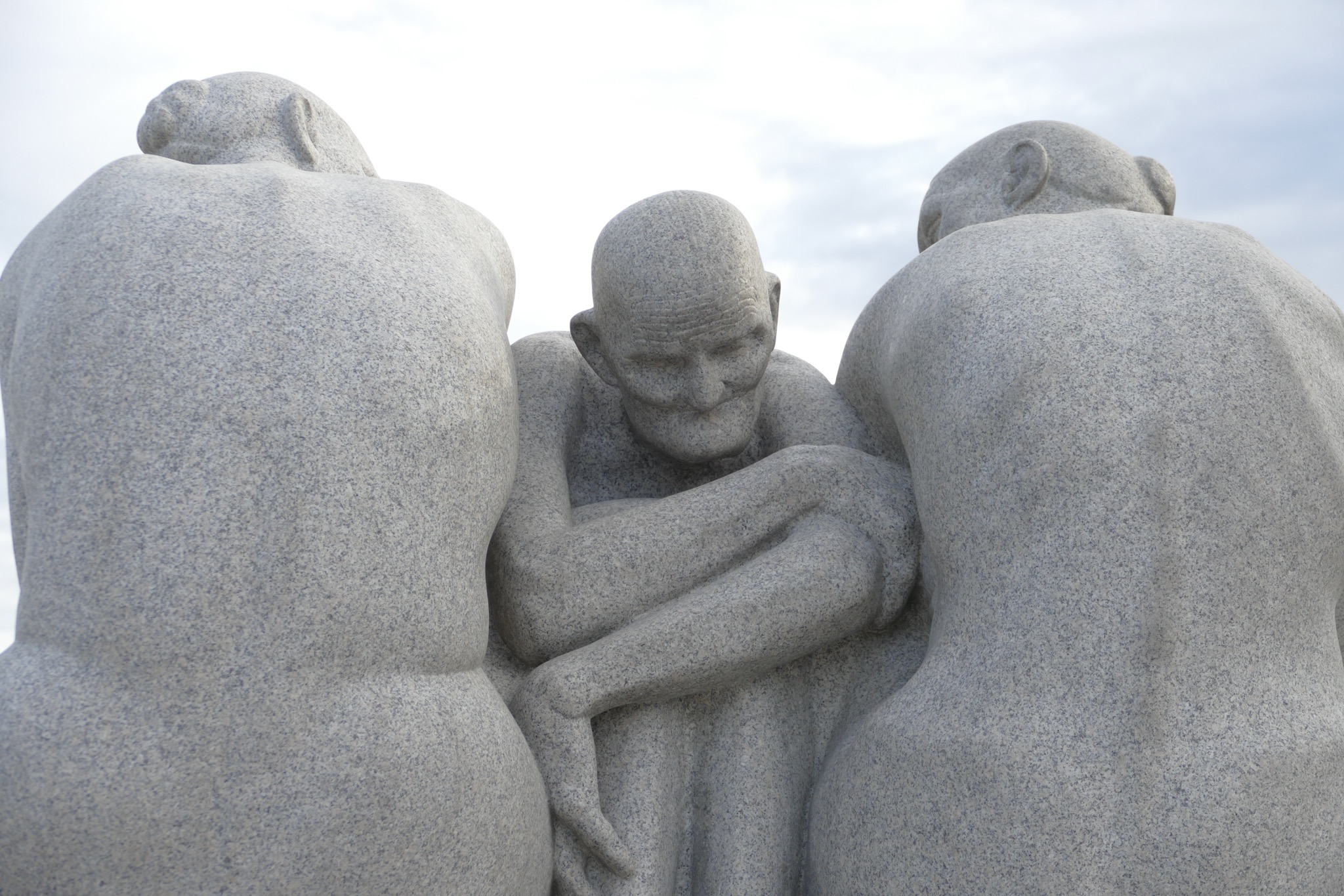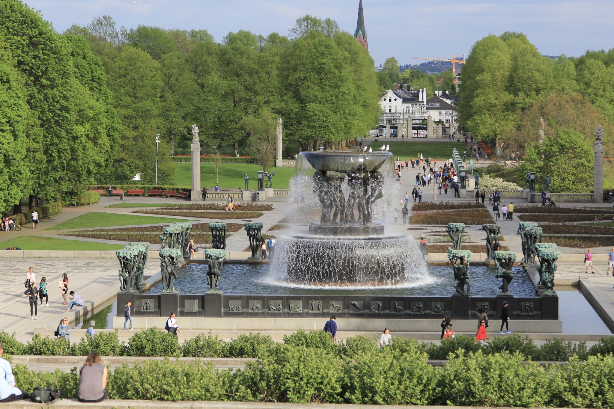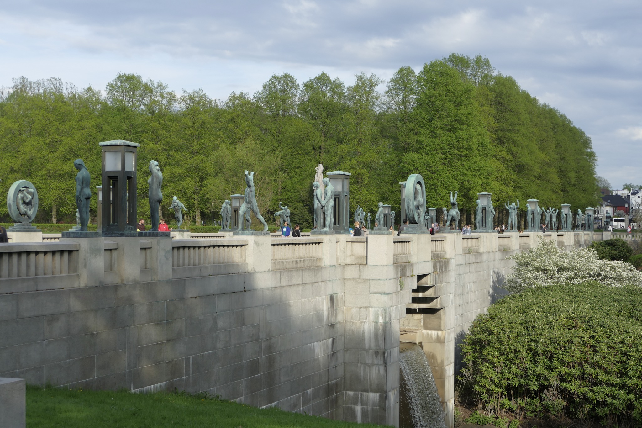 Our last stop for the day was Vigeland Park. Gustav Vigeland (1869-1943) was a Norwegian sculptor. He designed the Nobel Peace Prize medal, but he is most famous for a huge collection of massive sculptures in the park that bears his name. The Vigeland installation features 212 bronze and granite sculptures. He declined to name his sculptures or explain their meaning, but they are a celebration of the human body, life, love and relationships.