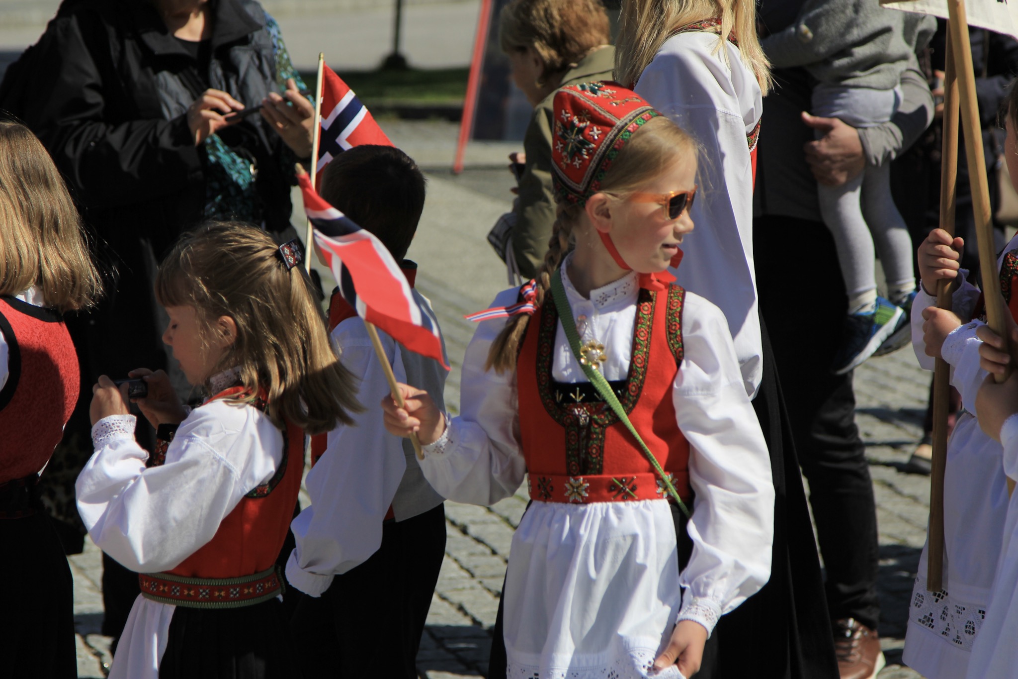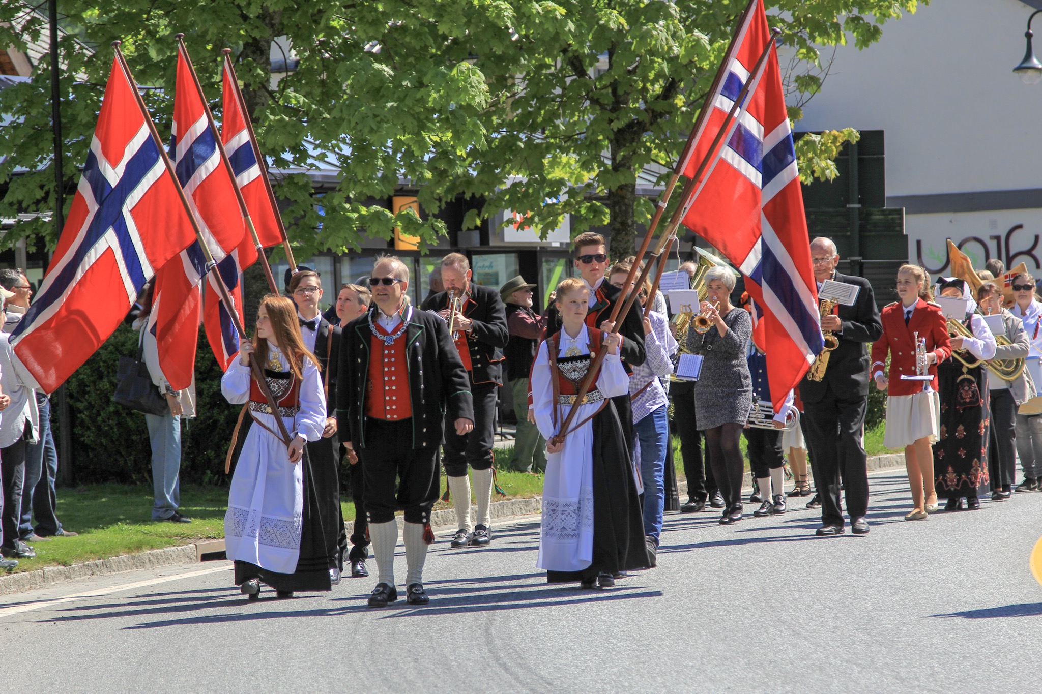 Today, May 17, is Norway’s National Day, which commemorates the signing of the Norwegian constitution in 1814. Interestingly while most countries celebrate their national days with military parades, Norway’s parades celebrate children. Many people wear their traditional national outfits, wave flags and banners and celebrate enthusiastically. Eidfjord, where we spent today, is a small town of around 1000 people, and I think everyone turned out for the parade!