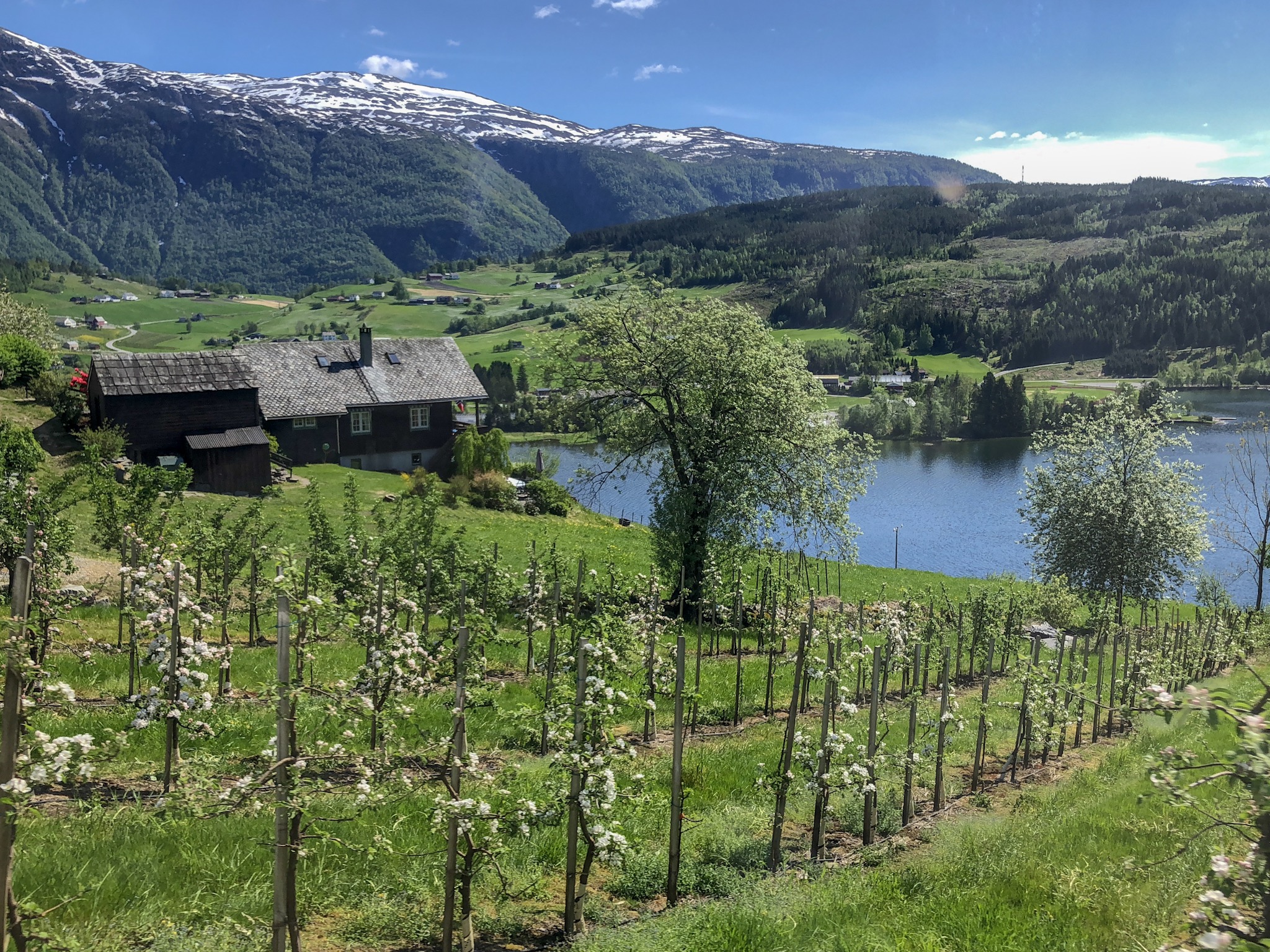 After lunch on board, we visited an apple cider farm (Hardanger Saft -og Siderfabrikk). We enjoyed meeting some locals and learning a bit more about life in this remote region. Fruit-growing was introduced into Norway by English monks in the 10th century. Apparently apples grow very well here in the long summer days, and we did get to taste apple juice, cider & liqueur, and a very nice apple brandy. To everyone’s disappointment, they are not allowed to sell on Sundays and public holidays, so we had to be content with generous tastings. The drive there and back was incredibly scenic (I feel like I’m repeating myself, but it’s true).