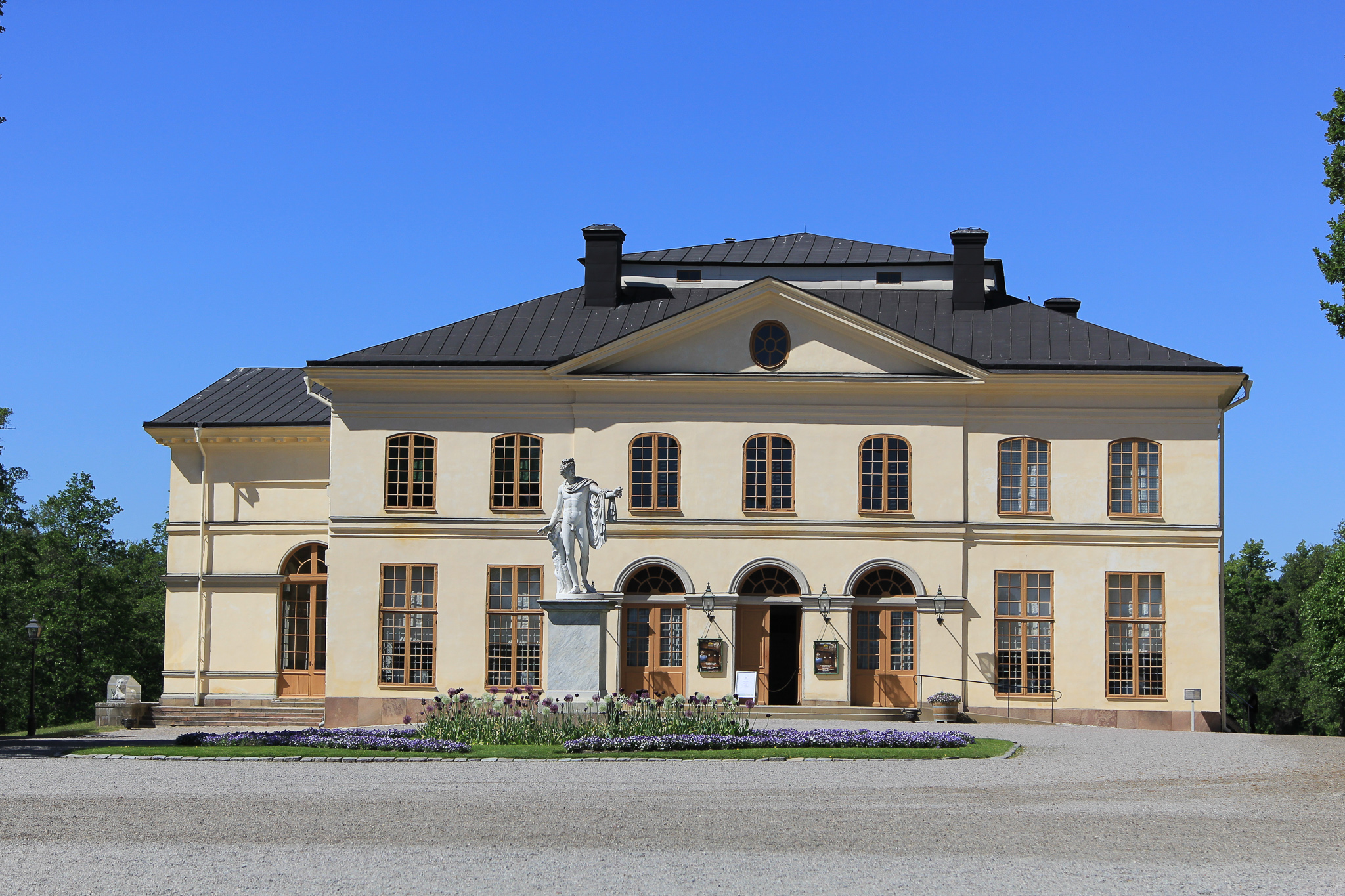 The Drottningholm Palace Gardens are vast (120 hectares) and impressive. A large Baroque garden in formal French style was designed along with the palace. and includes many statues and fountains. Most of the statues were spoils of war, coming from Prague in 1648 and Fredriksborg Castle in Denmark in 1659. The largest part of the park is laid out in a less formal, landscaped style. Winding paths and a large irregularly shaped pond contrast with the formal layout of the Baroque garden. A rather splendid curiosity from Gustav III’s time is the Vakttältet (Turkish tent), a wooden structure built in 1781 to house the royal dragoon guards. The facade is entirely of sheet metal, painted to resemble canvas, concealing a 2 storey wooden building where the guards’ dormitories were.