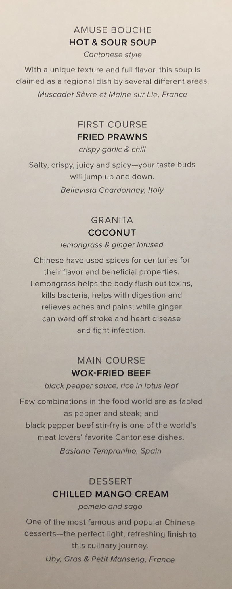 I did make sure to photograph the menus and each course at Chef’s Table, so here they are: