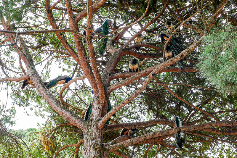 I’ve never seen peacocks roosting in trees before. As well as parading around the grounds, you can find them on the ancient castle walls.