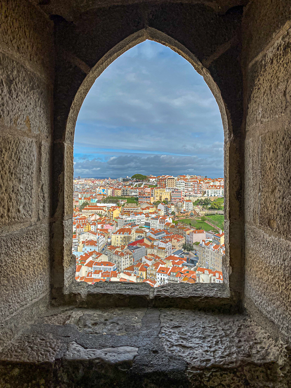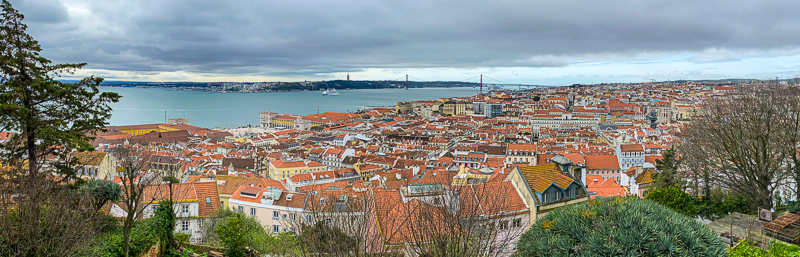The views from the terrace of São Jorge Castle are impressive. It is the highest point in Lisbon, and you can see along the Tagus River to Belém and beyond. This was the morning of our first day in Lisbon – looking back at the photos now it is fun to see that there is a view of many of the places we were to visit over the next few days.