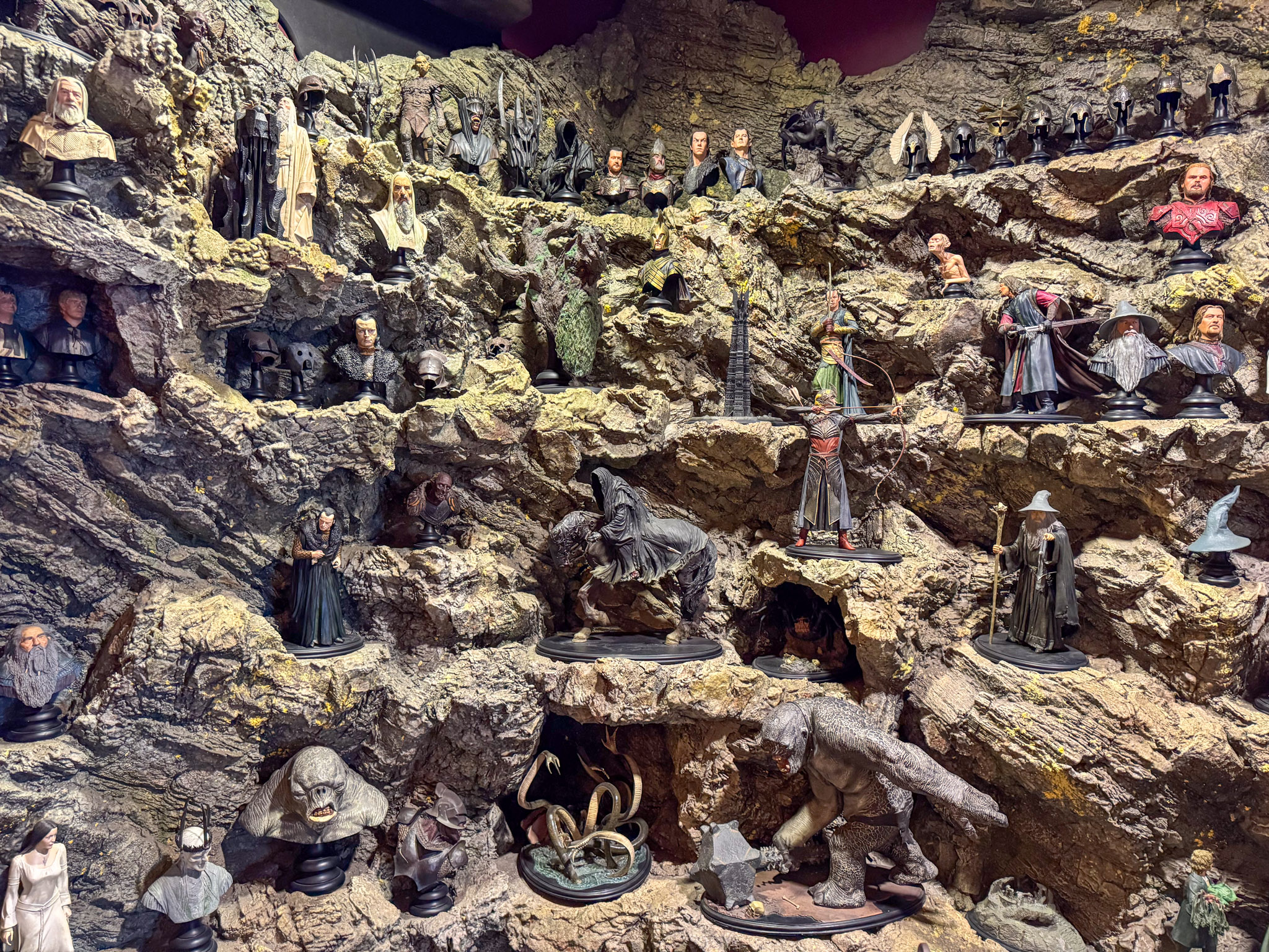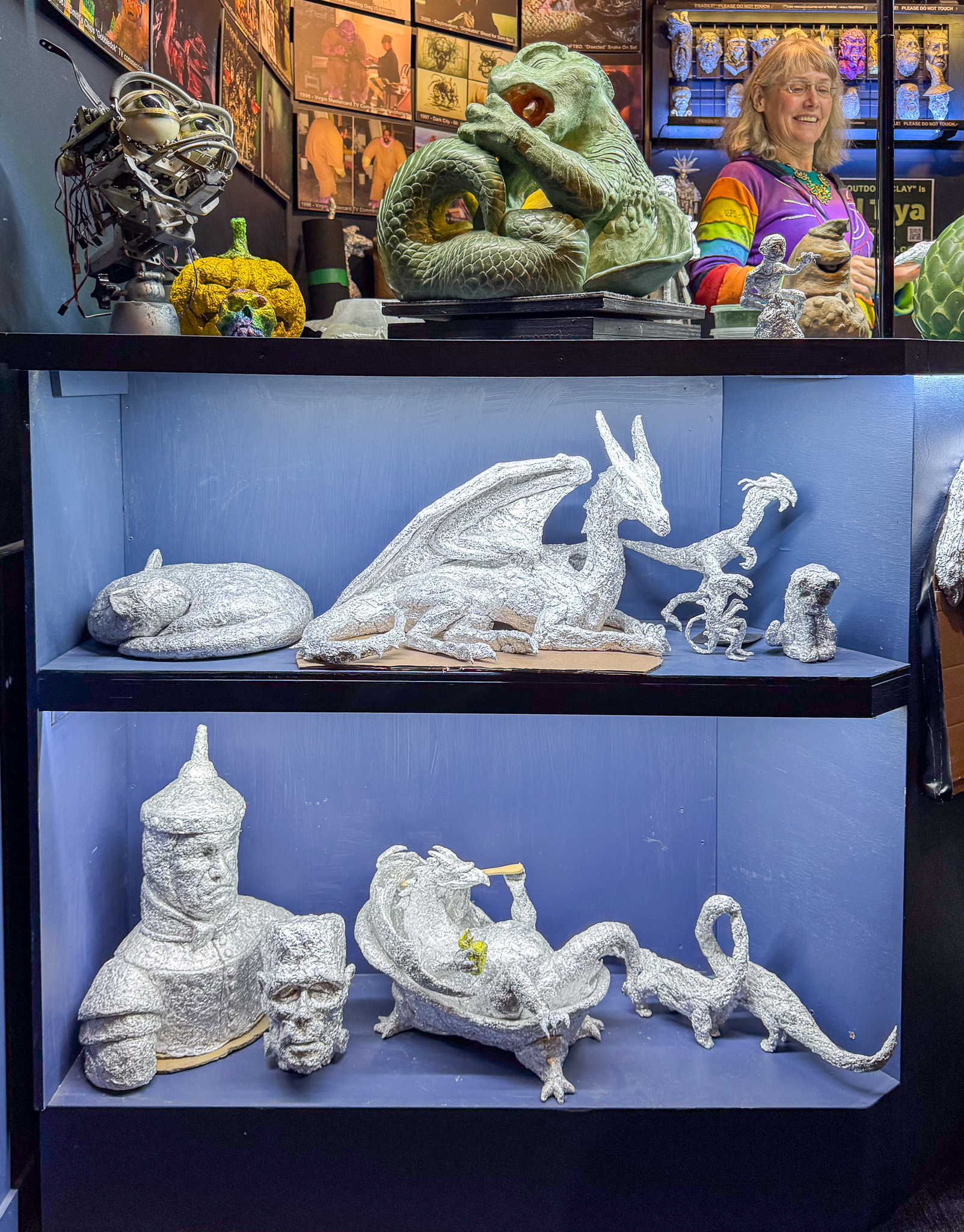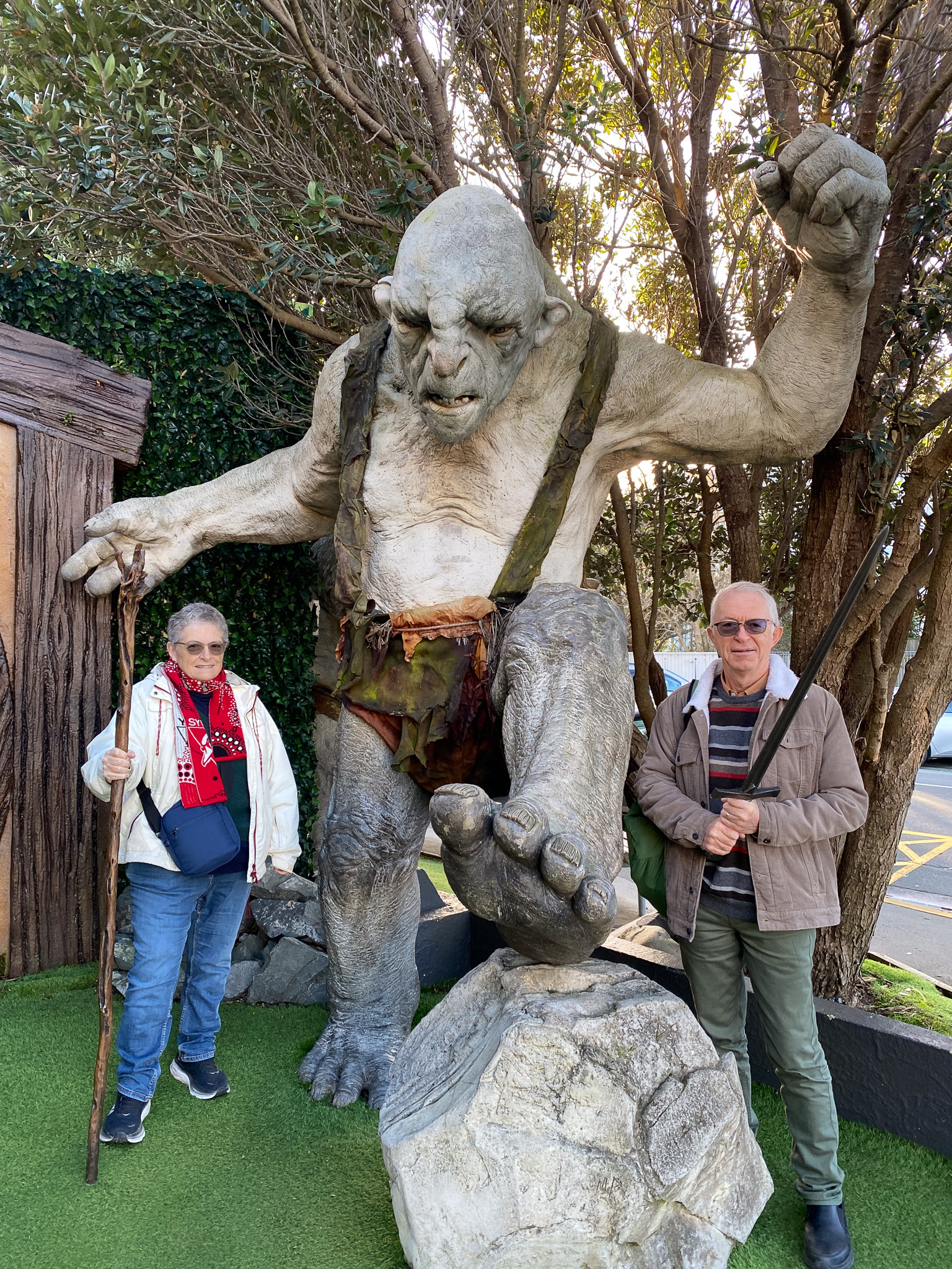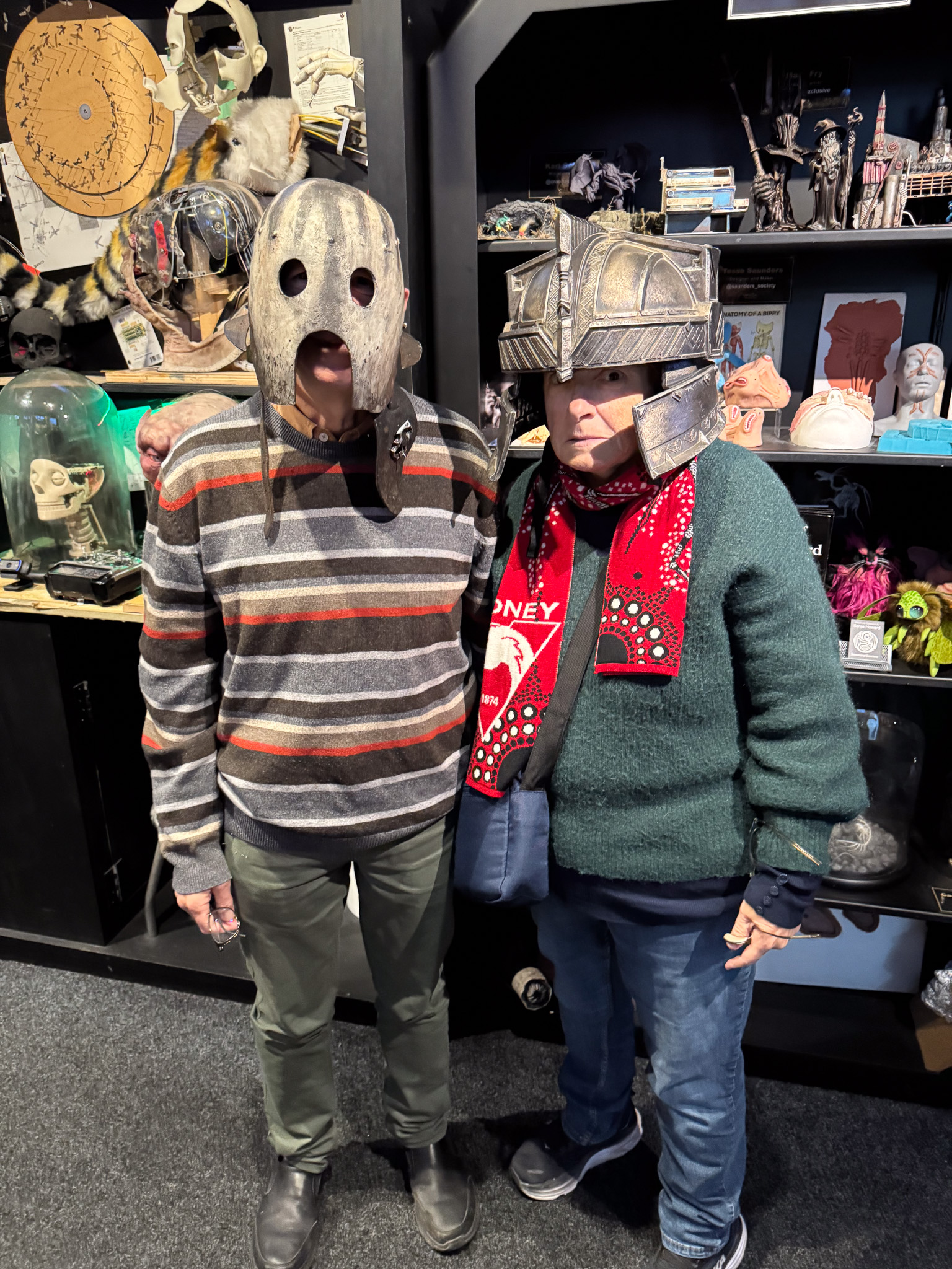 We spent a fun and fascinating 90 minutes touring the Wētā Cave, learning about special effects and the various processes involved in getting these kinds of films made. We even got to do a little sculpting ourselves using aluminium foil. We had been led to believe you could not take photos inside, and there are some restrictions, but there were enough places where photography was welcomed to keep a couple of shutterbugs like us happy. Of course we posed for the inevitable photo op as well. Interestingly the restrictions are because Wētā themselves don’t own all the copyright – these belong to the Hollywood studios. So here’s a glimpse inside Wētā Workshop Wellington.