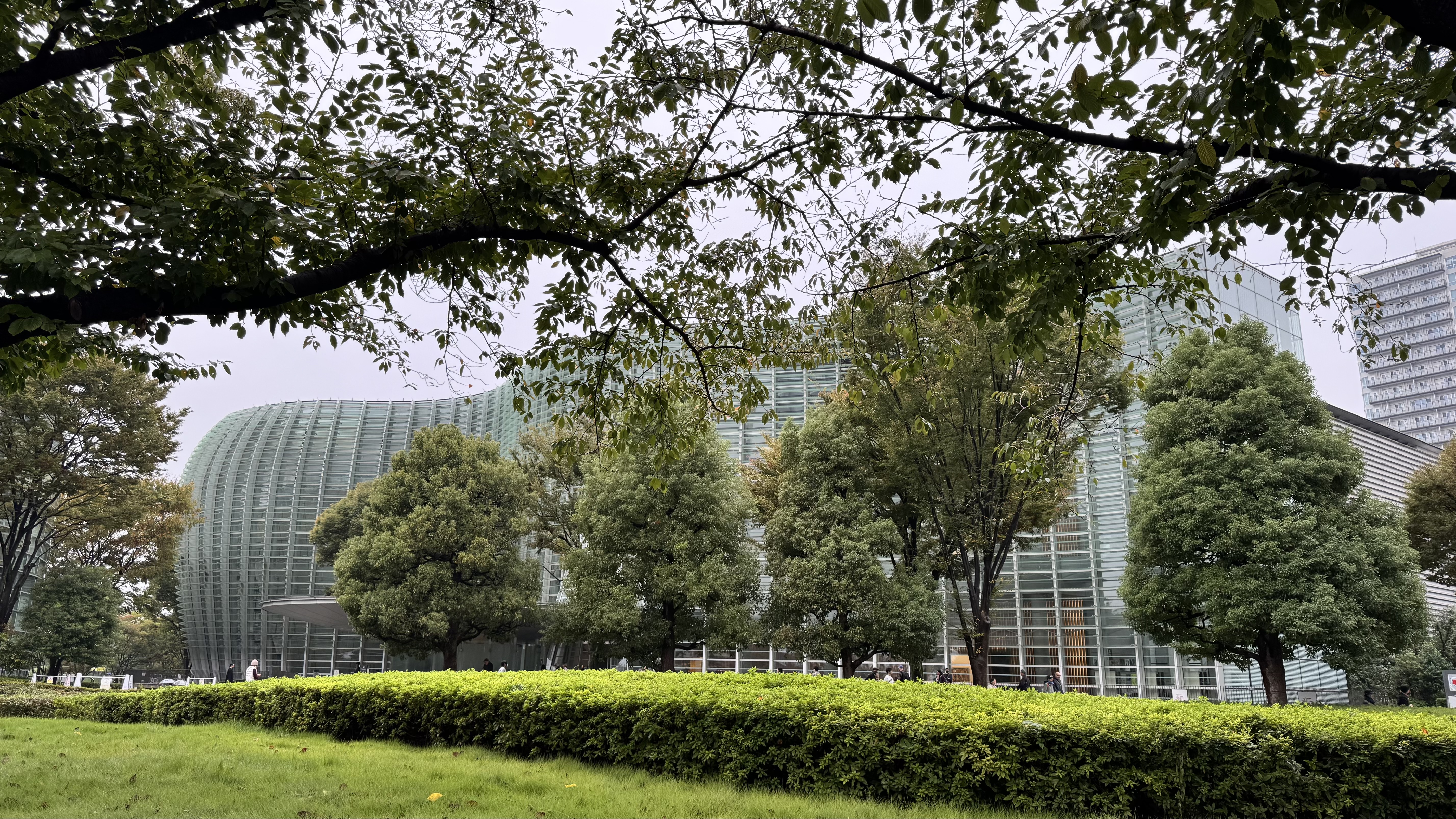 The National Art Centre is a huge exhibition space dedicated to “making a contribution to culture through art in order to achieve mutual understanding and coexistence”. They have no permanent exhibitions, but host a broad spectrum of exhibitions in the large display areas. The design of the building itself is a work of art. Designed by architect Kisho Kurokawa, the wave-like glass facade makes a striking first impression. The soaring lobby contains 2 cone-shaped structures which house a salon de thé and a Paul Bocuse fine dining restaurant. Quite stunning. We had lunch (in the cafeteria for plebs on the ground level) and then admired some paintings by members of a Japanese art society.