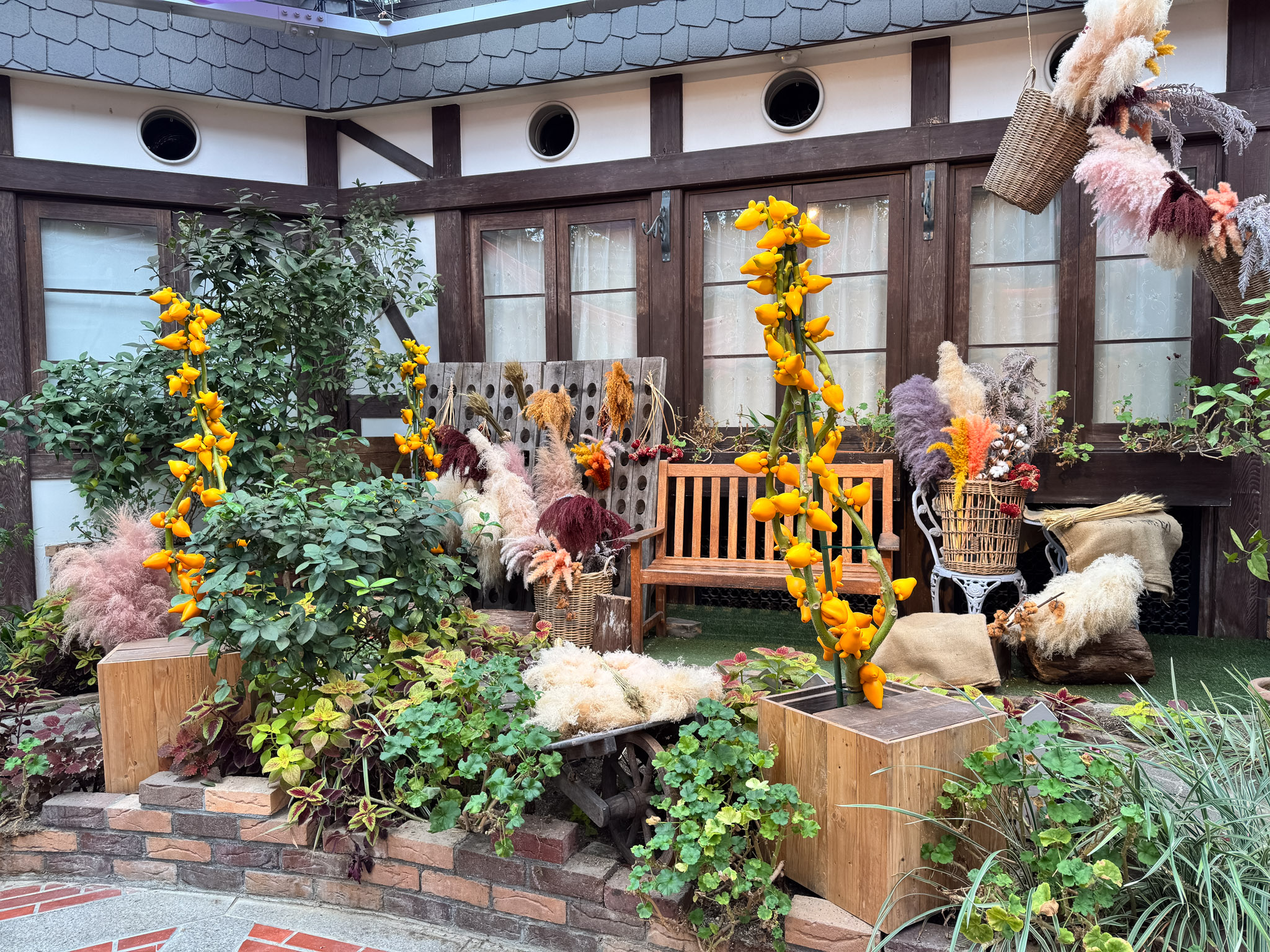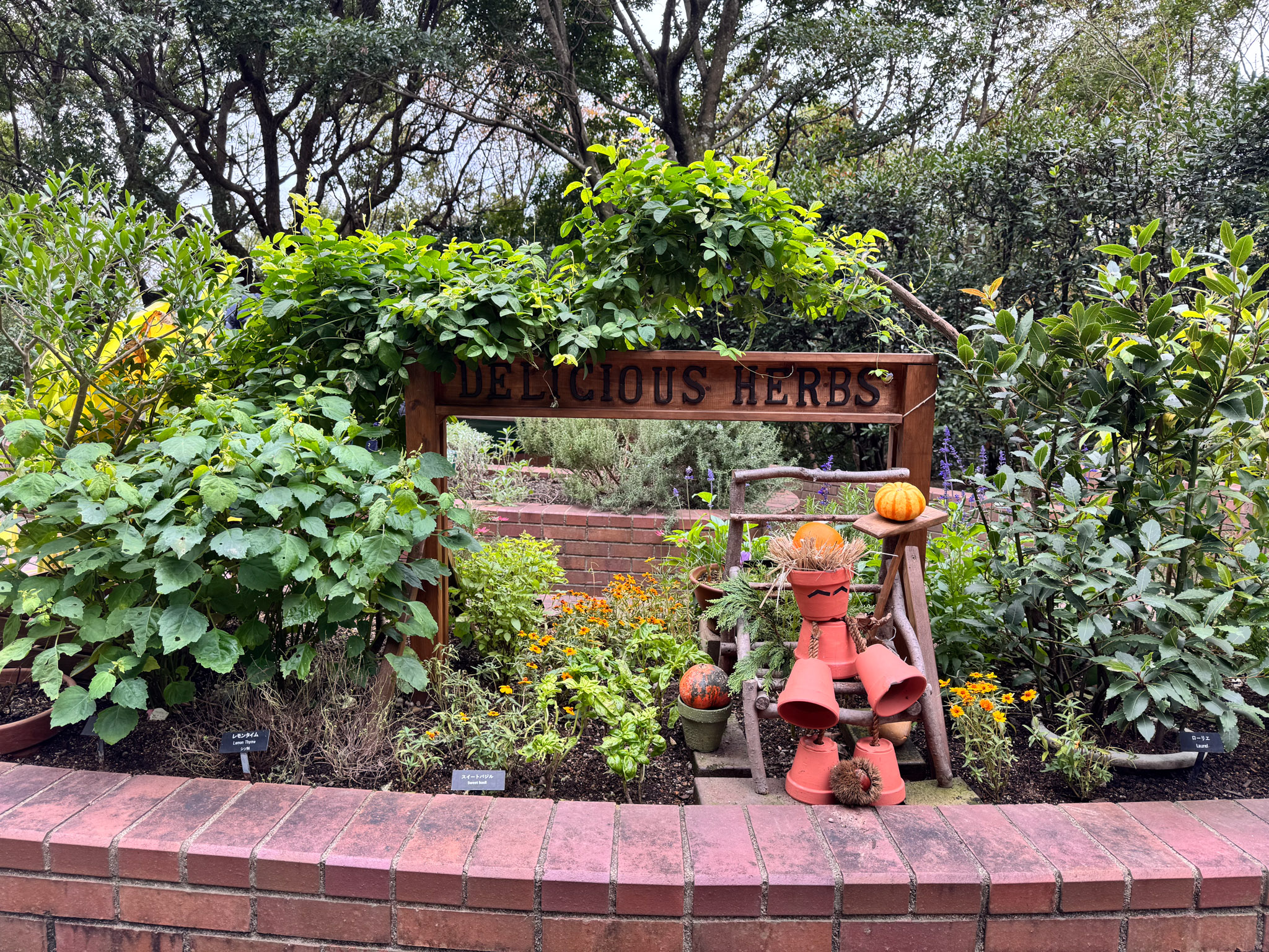 The massive glasshouses include various tropical plants, and some fanciful displays of rooms overflowing with herbs.